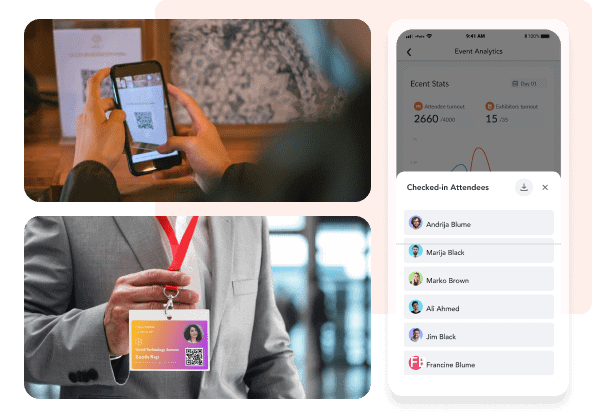 • Display attendees’ unique QR codes on printed badges for session check-ins, networking, and lead capture.