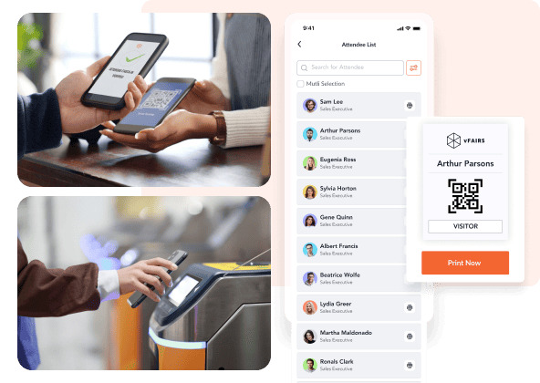 • Automatically print personalized badges in seconds, including personal QR contact codes.