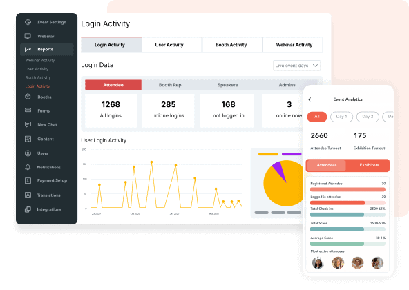 • Evaluate your event’s performance through in-depth insights into registrations, logins, session attendance and webinar engagement.