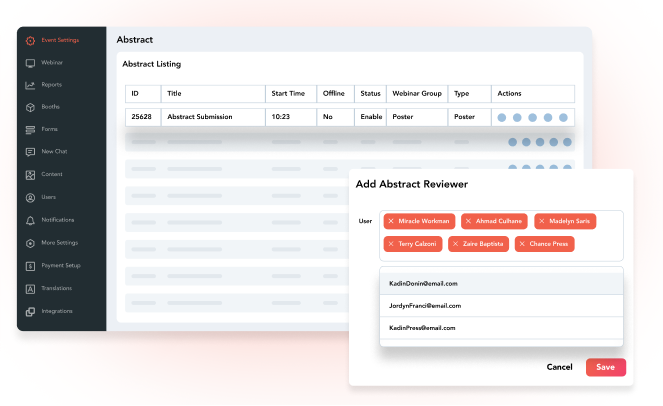 Create a smooth abstract management or call-for-papers process the way you want. Customize how you collect, review, and approve abstract submissions, and translate accepted pieces into event sessions all in one versatile platform.