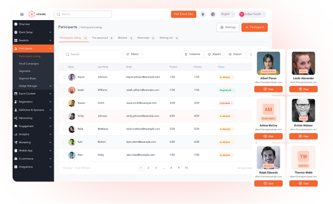 Whether you’re hosting a conference, trade show, hiring fair, or internal company event, vFairs offers a full suite of features that work together seamlessly to help you plan, manage, and execute your ideal event.