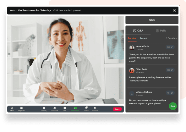 Host impressive virtual, hybrid, and in-person pharma events with G2’s #1-rated event management platform. Choose from a range of highly customizable event solutions, seamless conference features, and networking tools for a truly epic pharma event.