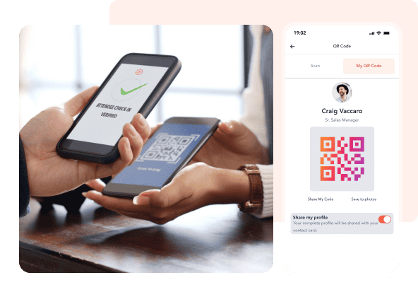 • Enable QR-based digital contact card sharing among attendees.